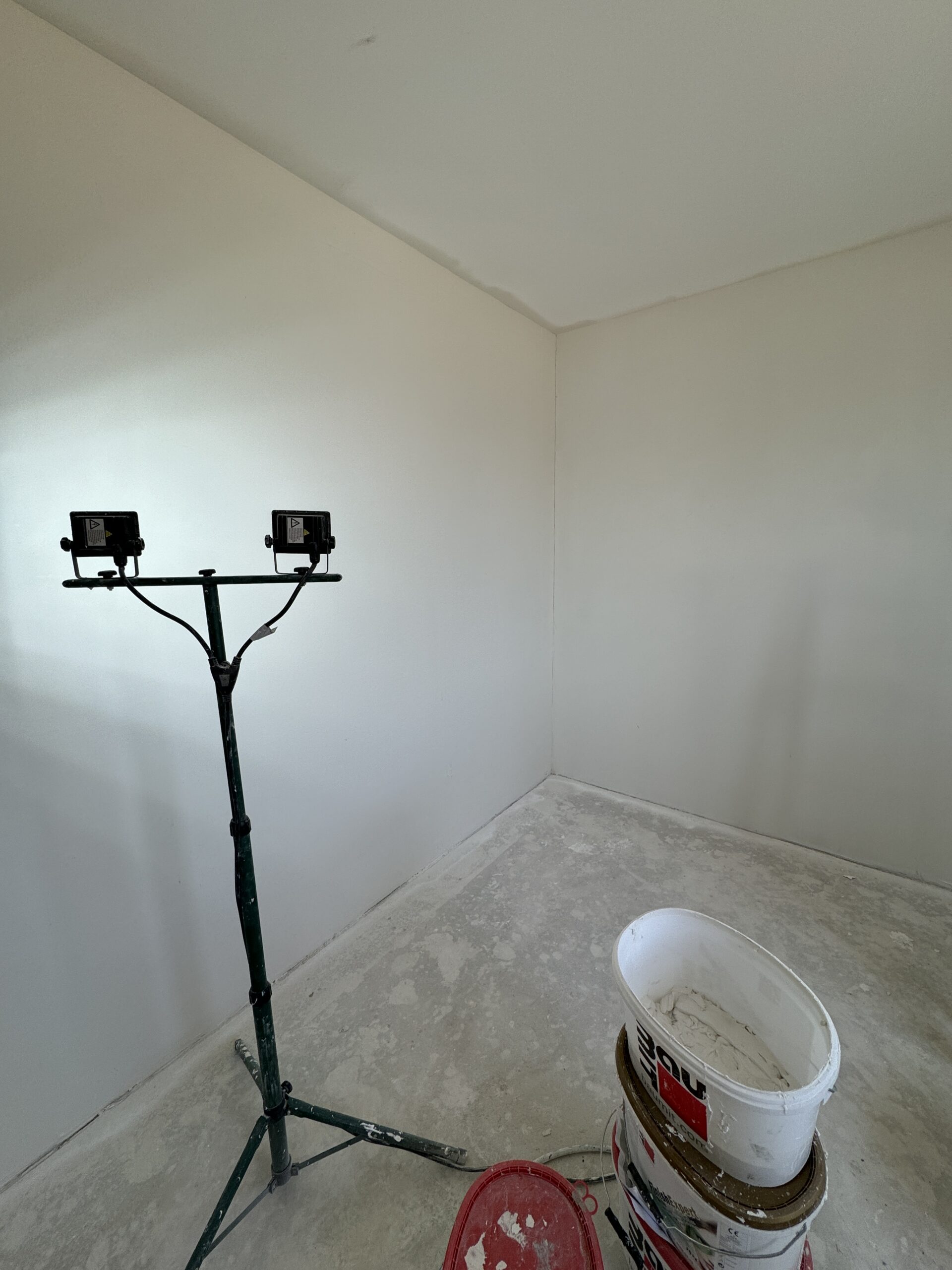 Mind a vakolás, - mind a glettelés ma már gépi felvitellel történik, melyet frissen formáznak még a szakemberek. Ezt követően majd a felületek felcsiszolásával és javításával lesz festésre fogadóképes az állapot.